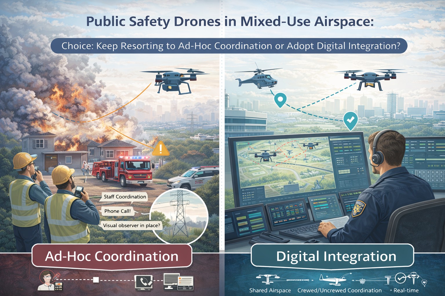 Unlike commercial operations, public safety missions were inherently unpredictable and often occurred in airspace shared with emergency helicopters.